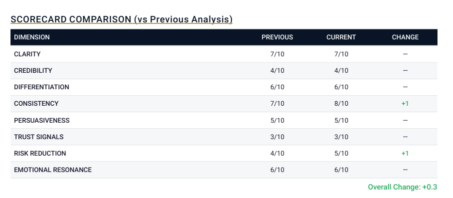 Submit your website and get an objective, structured breakdown of how your messaging actually lands. Here’s what you’ll get (in minutes):